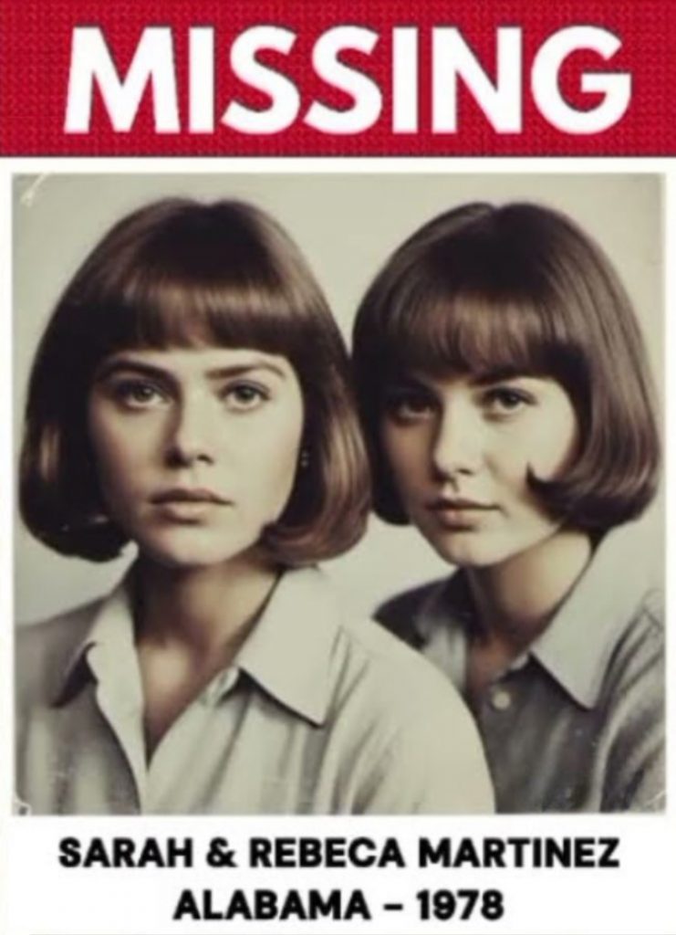 It was Thursday, October 17, 1974. The Martinez sisters clocked out of Murphy’s Diner at 8:07 p.m., their aprons dusted with flour, their laughter echoing through the quiet streets of Troy, Alabama. They were well-known around town—their kindness, their hard work, their identical smiles that could light up any room. The girls began their usual walk home along Pine Street. They were last seen buying a birthday card for their mother at Henderson’s Pharmacy. Just an ordinary errand on an ordinary night—or so it seemed. When they didn’t arrive home, panic set in. Their father, Robert, searched the streets by flashlight. Their mother, Maria, waited at the window until sunrise. By midnight, a missing persons report was filed. By morning, the entire town was searching.