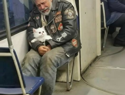 It started like any other morning commute — the rhythmic clatter of the train, the hum of weary passengers, and the city’s familiar indifference. But that silence broke when I noticed a biker sitting across from me, sobbing quietly into a tiny orange-and-white kitten.