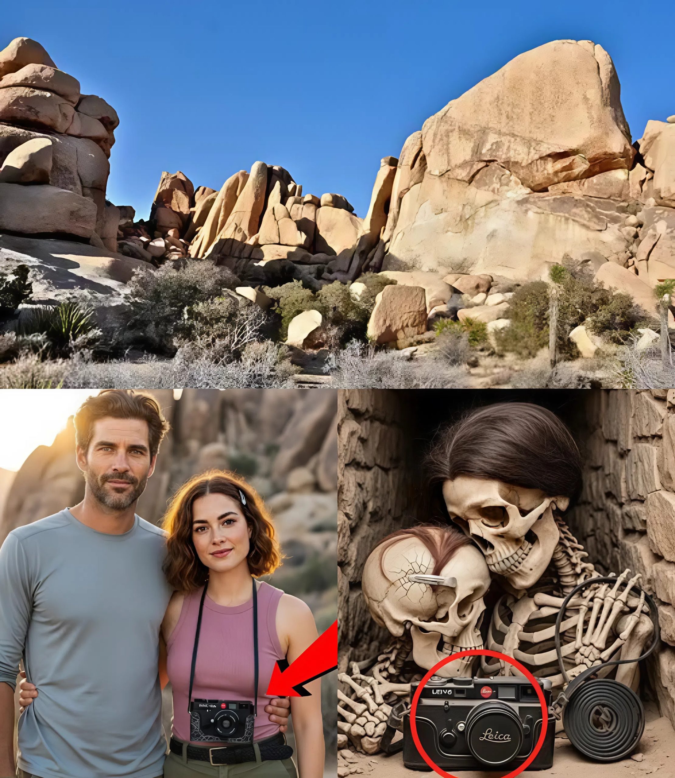 Their disappearance, once dismissed as an unfortunate accident, has evolved into something far more unsettling. When a park ranger stumbled upon their intertwined skeletons earlier this year, partially reclaimed by the desert floor, the evidence told a story too strange to ignore. Their wedding rings, still gleaming against sun-bleached bone, suggested a final moment neither violent nor desperate, but strangely peaceful. Close by, half-buried beneath shifting dunes, an old camera offered the last fragments of their journey: cryptic circular markings in the sand and the blurred silhouette of a figure that should not have been there.