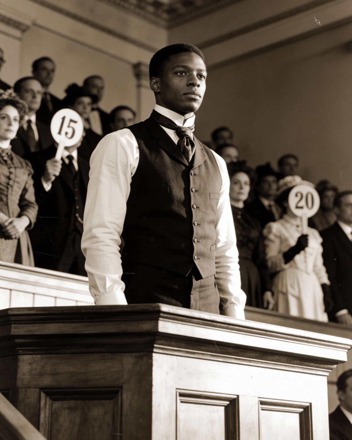 The room erupted. It wasn’t a bidding war; it was a massacre of common sense. The price climbed with a frantic, desperate energy. Men shouted over one another, their faces flushed purple, their fortunes being cast into the fire for the right to claim the golden youth.