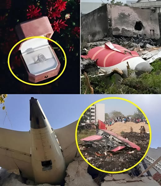 An engagement ring (stock image), the wreckage from the Air India crash.Credit : Getty;PUNIT PARANJPE/AFP via Getty