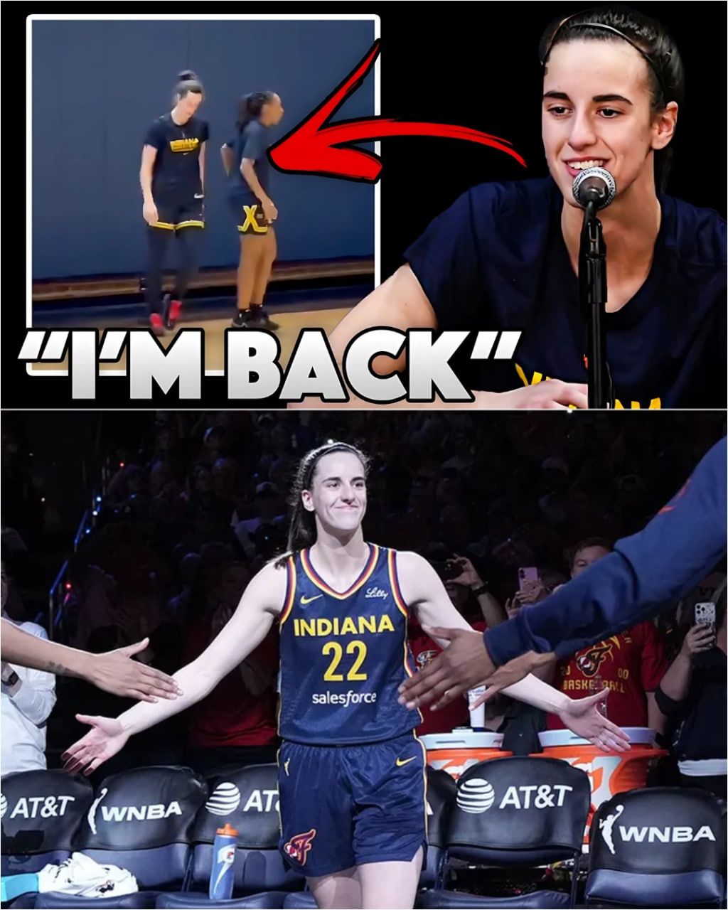 Just Caitlin Clark, walking back onto the court at Salesforce Court in navy compression tights, a loose bun tied high, and a quiet fire in her eyes that made people stop mid-conversation. Trainers turned. Reporters went silent. Teammates glanced over without saying a word.